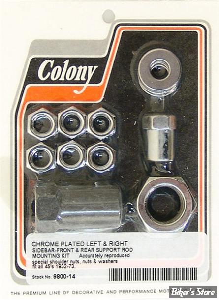 Chrome. Left & right side bar, front & rear support rod mount. Reproduction of the special shoulder nuts, nuts and washers used to mount the floorboards.