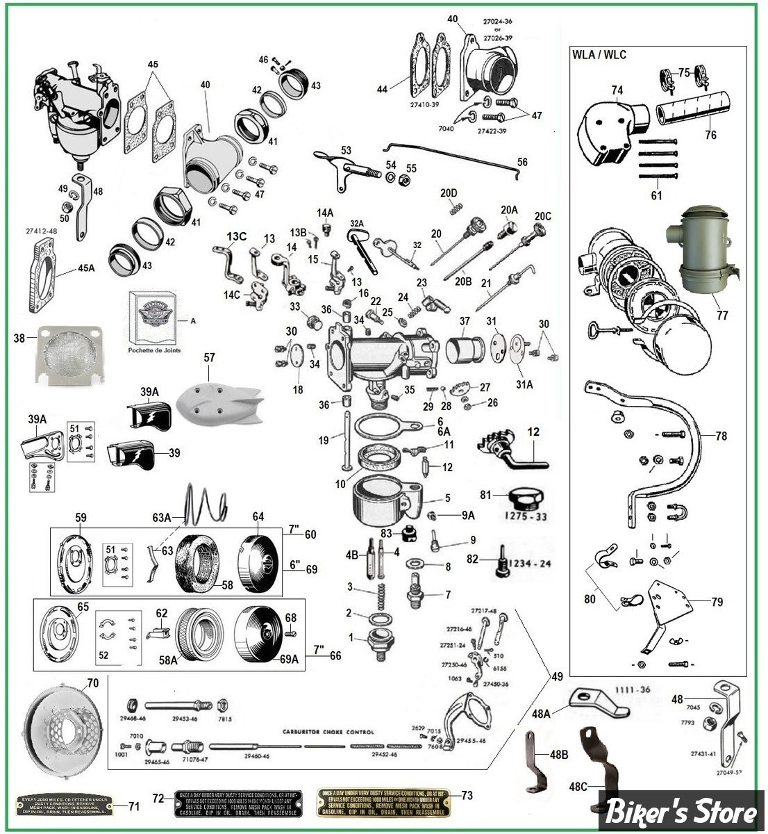Eclaté du carburateur Linkert de 1933 à 1965.