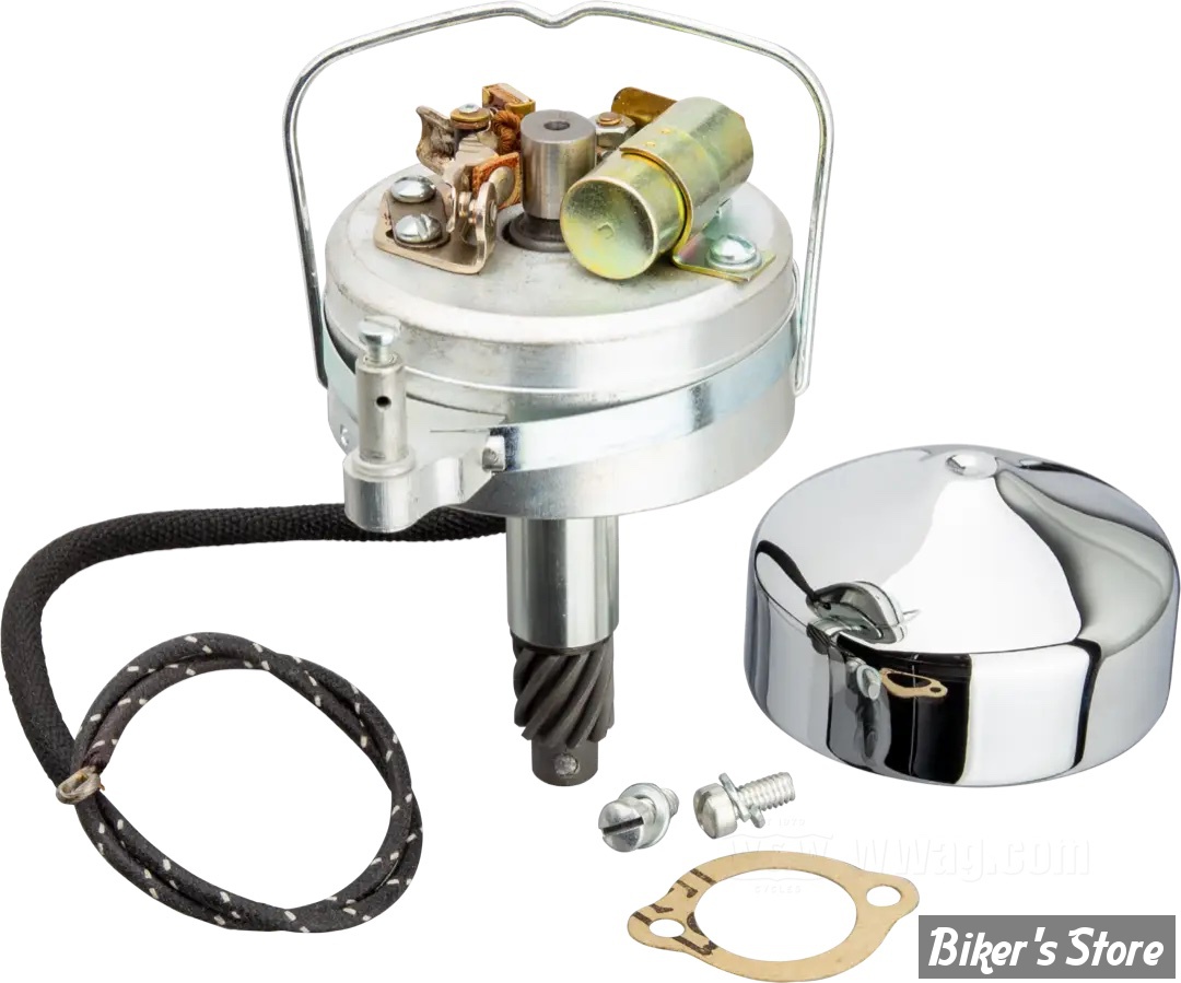 Des fidèles reproductions des allumages à rupteurs tels qu’ils étaient utilisés sur les Flathead, K-Model et Sportster 1937-1964. Complets avec rupteurs et condensateur, prêts à installer.