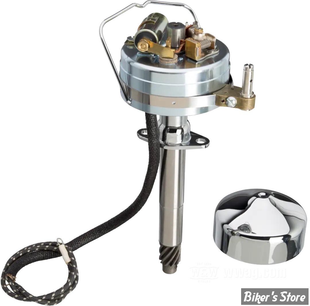 Des fidèles reproductions des allumages à rupteurs tels qu’ils étaient utilisés sur les Big Twins OHV. Dans ces configurations, ils sont corrects pour les millésimes 1936-1948 et 1949-1960, mais se montent sur tous les Big Twins OHV jusqu’à 1969. Complets avec rupteurs et condensateur, prêts à installer.
