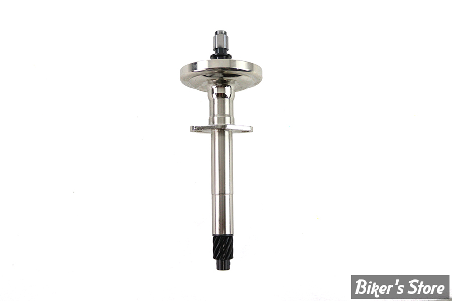 Nickel plated shaft body with gear and cam shaft installed with pin.