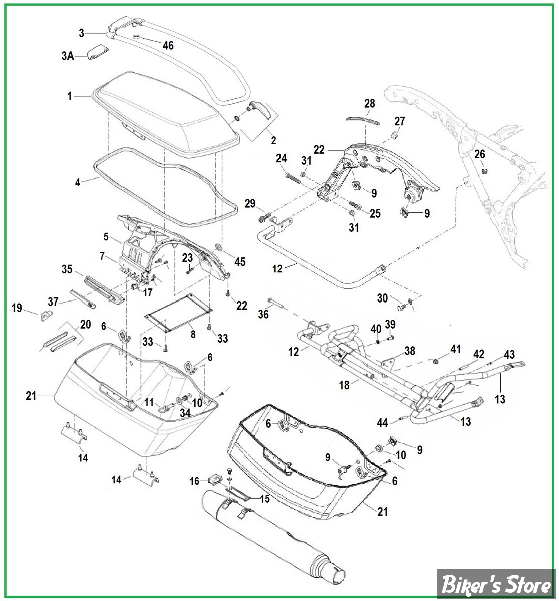 Eclaté des pièces de sacoches des Touring à partir de 2014.