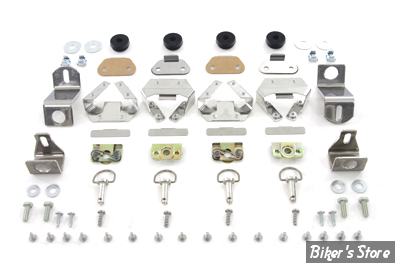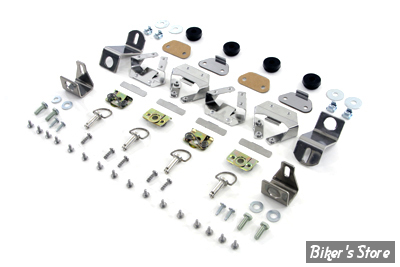 L'ensemble comprend quatre goujons de tête de caution, quatre rondelles, quatre œillets, quatre réceptacles et quatre supports pour les côtés gauche et droit pour le montage des sacoches.