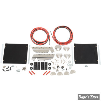 Avec des assemblages de loquet en chrome pour la gauche et la droite (matériel de montage compris), des pattes de fixation chromées, des plaques anti-usure avec matériel de montage, un kit de verrouillage chromé avec clefs, des goujons à étrier et des ron