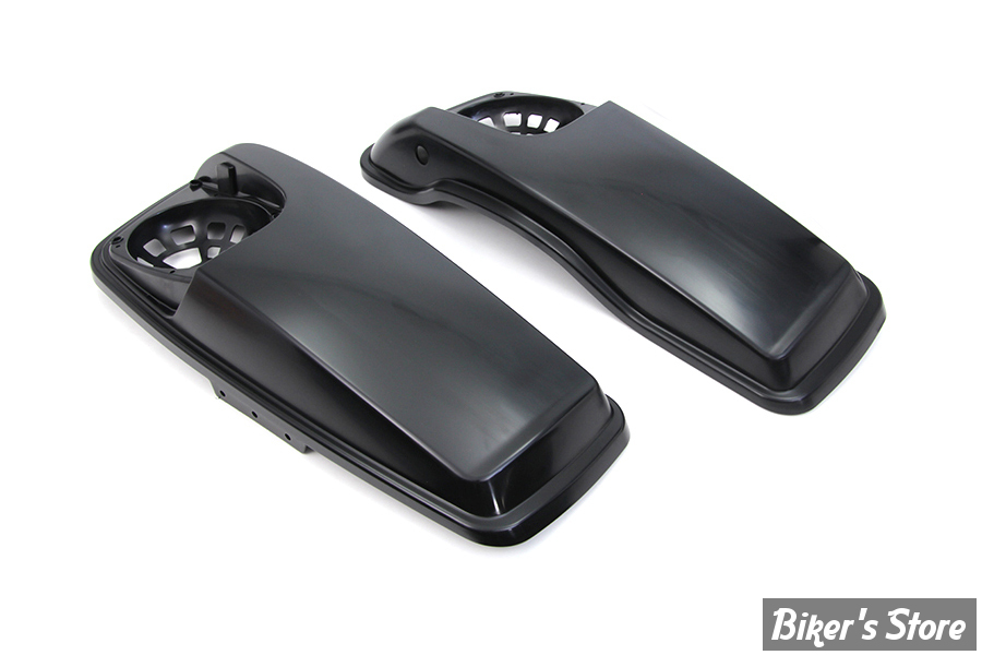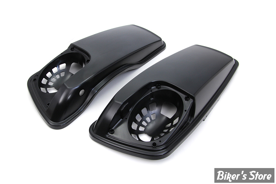 -L'ensemble de couvercle de sac de selle comprend des couvercles latéraux droit et gauche avec découpe de haut-parleur. Les couvercles sont en plastique avec une finition noire.