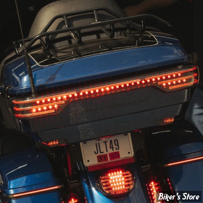 Barre de feu arrière SEQUENTIEL - Pour Touring 2 Ultra Limited (FLHTK) à partir de 2014, 2022-2023 CVO™ Road Glide Limited (FLTRKSE), 2020-2024 Road Glide Limited (FLTRK), 2014-2019 Electra Glide Ultra Classic (FLHTCU), 2015-2016 Ultra Classic Lo (FLHTCUL) & CVO™ Road Glide Ultra (FLTRUSE), 2016-2019 Road Glide Ultra (FLTRU), 2015-2018 Ultra Limited Lo (FLHTKL), 2014-2021 CVO™ Limited (FLHTKSE), Tri Glide (FLHTCUTG) à partir de 2014 et 2020-2022 CVO™ Tri Glide (FLHTCUTGSE) avec Tour Pack d'origine HD King Tour-Pak®. Le Kit