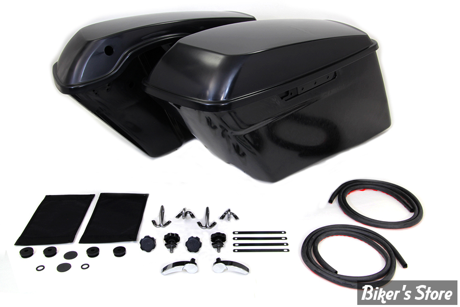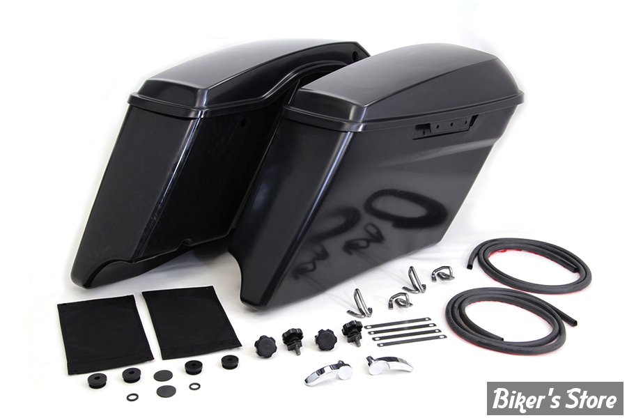Le kit de sacoche de selle étirée de 3 pouces comprend des sacs, des couvercles, des serrures et du matériel de montage.
