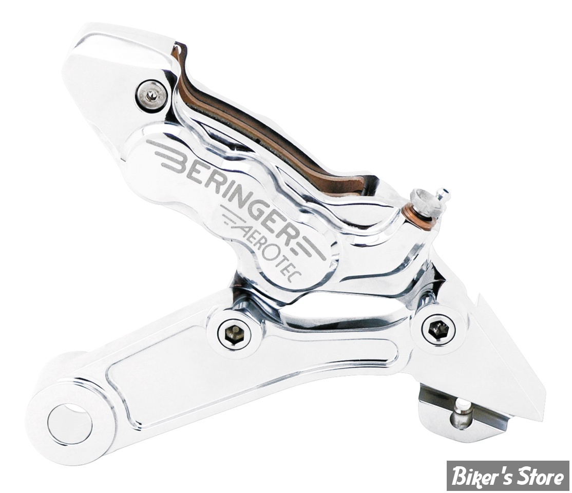 Beringer fabrique des freins depuis plus de 15 années et est apprécié par beaucoup d'usines et de teams de course pour leur exceptionnelle fiabilité. Cette compagnie a achevé un avantage technologique décisif avec leurs innovations brevetées. Beringer est également le fabricant pour n'importe quelles autres motos. Les freinages Beringer sont fabriqués selon les normes ISO 9001 et sont homologuées. Ces étriers sont usinés en aluminium de qualité aviation, le même qui est utilisé dans dans les avions supersoniques. Cet aluminium combine la réduction de poids, résistance à la déformation, même à haute température. Les pistons sont alliage d'inox. L'inox ne conduit qu'un treizième de la châleur conduite par l'aluminium ce qui isole parfaitement l'étrier de la châleur générée par les plaquettes. De plus les pistons en inox éliminent la possibilité de corrosion. Tous les étriers sont usinés CNC pour répondre aux plus hauts standards et pour garantir une épaisseur optimale des matériaux. Les étriers Beringer se distinguent par un freinage incisif avec un temps de réponse très court. Un freinage plus fort et plus aggressif est obtenu avec un effort au levier constant. Avec ces étriers il faut seulement 16.5 bars de pression pour avoir le même résultat que d'autres étrier avec 20 bars. Ces étriers sont disponibles pour l'avant ou pour l'arrière en versions 4-pistons ou 6-pistons et finitions polie, noire anodisée ou chromée.