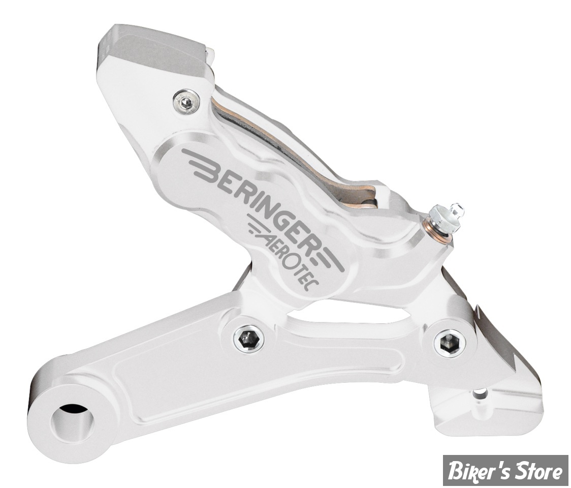 Beringer fabrique des freins depuis plus de 15 années et est apprécié par beaucoup d'usines et de teams de course pour leur exceptionnelle fiabilité. Cette compagnie a achevé un avantage technologique décisif avec leurs innovations brevetées. Beringer est également le fabricant pour n'importe quelles autres motos. Les freinages Beringer sont fabriqués selon les normes ISO 9001 et sont homologuées. Ces étriers sont usinés en aluminium de qualité aviation, le même qui est utilisé dans dans les avions supersoniques. Cet aluminium combine la réduction de poids, résistance à la déformation, même à haute température. Les pistons sont alliage d'inox. L'inox ne conduit qu'un treizième de la châleur conduite par l'aluminium ce qui isole parfaitement l'étrier de la châleur générée par les plaquettes. De plus les pistons en inox éliminent la possibilité de corrosion. Tous les étriers sont usinés CNC pour répondre aux plus hauts standards et pour garantir une épaisseur optimale des matériaux. Les étriers Beringer se distinguent par un freinage incisif avec un temps de réponse très court. Un freinage plus fort et plus aggressif est obtenu avec un effort au levier constant. Avec ces étriers il faut seulement 16.5 bars de pression pour avoir le même résultat que d'autres étrier avec 20 bars. Ces étriers sont disponibles pour l'avant ou pour l'arrière en versions 4-pistons ou 6-pistons et finitions polie, noire anodisée ou chromée.