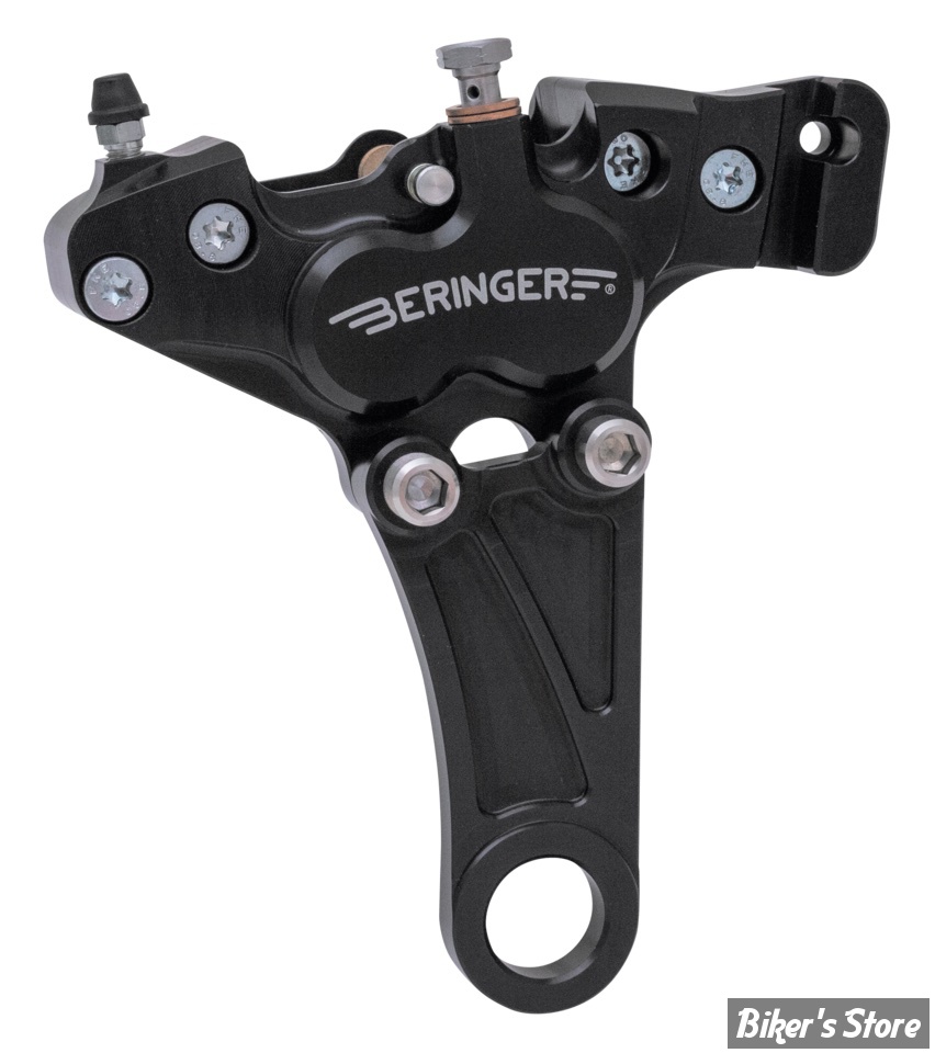 Beringer fabrique des freins depuis plus de 15 années et est apprécié par beaucoup d'usines et de teams de course pour leur exceptionnelle fiabilité. Cette compagnie a achevé un avantage technologique décisif avec leurs innovations brevetées. Beringer est également le fabricant pour n'importe quelles autres motos. Les freinages Beringer sont fabriqués selon les normes ISO 9001 et sont homologuées. Ces étriers sont usinés en aluminium de qualité aviation, le même qui est utilisé dans dans les avions supersoniques. Cet aluminium combine la réduction de poids, résistance à la déformation, même à haute température. Les pistons sont alliage d'inox. L'inox ne conduit qu'un treizième de la châleur conduite par l'aluminium ce qui isole parfaitement l'étrier de la châleur générée par les plaquettes. De plus les pistons en inox éliminent la possibilité de corrosion. Tous les étriers sont usinés CNC pour répondre aux plus hauts standards et pour garantir une épaisseur optimale des matériaux. Les étriers Beringer se distinguent par un freinage incisif avec un temps de réponse très court. Un freinage plus fort et plus aggressif est obtenu avec un effort au levier constant. Avec ces étriers il faut seulement 16.5 bars de pression pour avoir le même résultat que d'autres étrier avec 20 bars. Ces étriers sont disponibles pour l'avant ou pour l'arrière en versions 4-pistons ou 6-pistons et finitions polie, noire anodisée ou chromée.