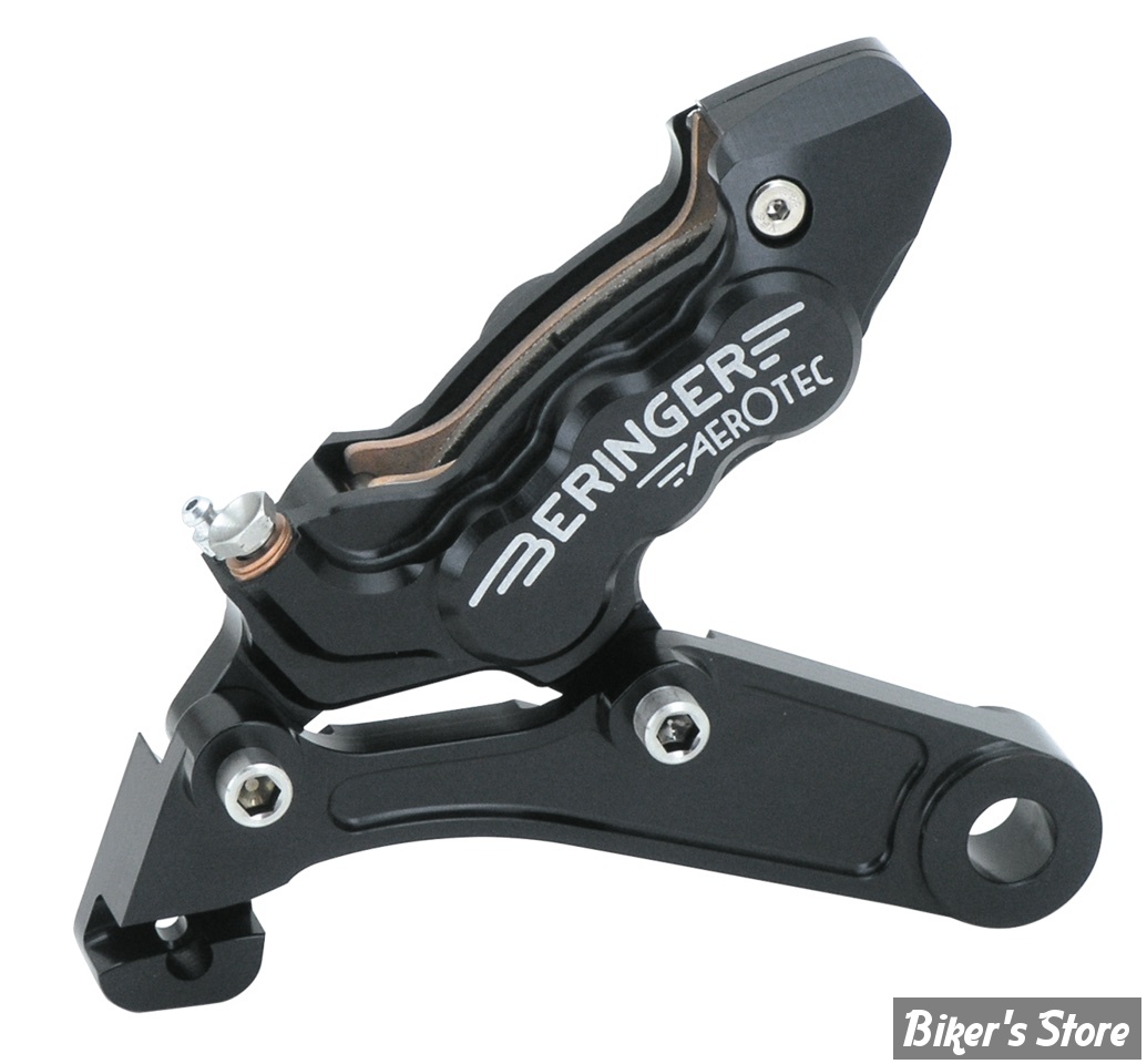 Beringer fabrique des freins depuis plus de 15 années et est apprécié par beaucoup d'usines et de teams de course pour leur exceptionnelle fiabilité. Cette compagnie a achevé un avantage technologique décisif avec leurs innovations brevetées. Beringer est également le fabricant pour n'importe quelles autres motos. Les freinages Beringer sont fabriqués selon les normes ISO 9001 et sont homologuées. Ces étriers sont usinés en aluminium de qualité aviation, le même qui est utilisé dans dans les avions supersoniques. Cet aluminium combine la réduction de poids, résistance à la déformation, même à haute température. Les pistons sont alliage d'inox. L'inox ne conduit qu'un treizième de la châleur conduite par l'aluminium ce qui isole parfaitement l'étrier de la châleur générée par les plaquettes. De plus les pistons en inox éliminent la possibilité de corrosion. Tous les étriers sont usinés CNC pour répondre aux plus hauts standards et pour garantir une épaisseur optimale des matériaux. Les étriers Beringer se distinguent par un freinage incisif avec un temps de réponse très court. Un freinage plus fort et plus aggressif est obtenu avec un effort au levier constant. Avec ces étriers il faut seulement 16.5 bars de pression pour avoir le même résultat que d'autres étrier avec 20 bars. Ces étriers sont disponibles pour l'avant ou pour l'arrière en versions 4-pistons ou 6-pistons et finitions polie, noire anodisée ou chromée.