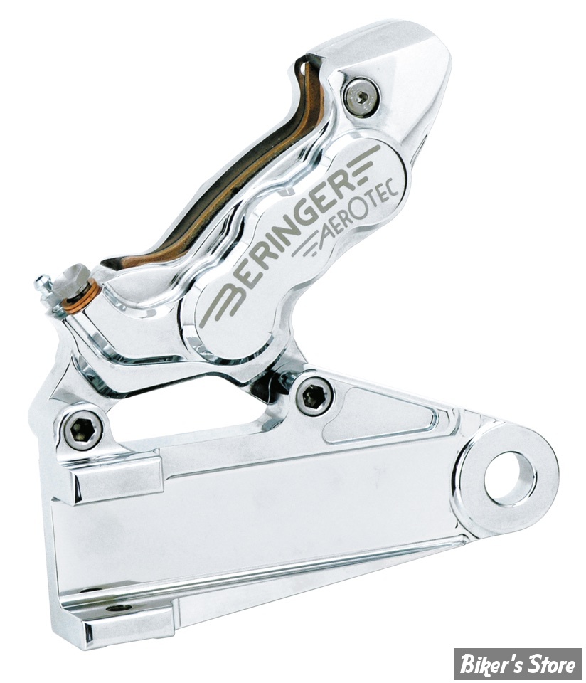 Beringer fabrique des freins depuis plus de 15 années et est apprécié par beaucoup d'usines et de teams de course pour leur exceptionnelle fiabilité. Cette compagnie a achevé un avantage technologique décisif avec leurs innovations brevetées. Beringer est également le fabricant pour n'importe quelles autres motos. Les freinages Beringer sont fabriqués selon les normes ISO 9001 et sont homologuées. Ces étriers sont usinés en aluminium de qualité aviation, le même qui est utilisé dans dans les avions supersoniques. Cet aluminium combine la réduction de poids, résistance à la déformation, même à haute température. Les pistons sont alliage d'inox. L'inox ne conduit qu'un treizième de la châleur conduite par l'aluminium ce qui isole parfaitement l'étrier de la châleur générée par les plaquettes. De plus les pistons en inox éliminent la possibilité de corrosion. Tous les étriers sont usinés CNC pour répondre aux plus hauts standards et pour garantir une épaisseur optimale des matériaux. Les étriers Beringer se distinguent par un freinage incisif avec un temps de réponse très court. Un freinage plus fort et plus aggressif est obtenu avec un effort au levier constant. Avec ces étriers il faut seulement 16.5 bars de pression pour avoir le même résultat que d'autres étrier avec 20 bars. Ces étriers sont disponibles pour l'avant ou pour l'arrière en versions 4-pistons ou 6-pistons et finitions polie, noire anodisée ou chromée.