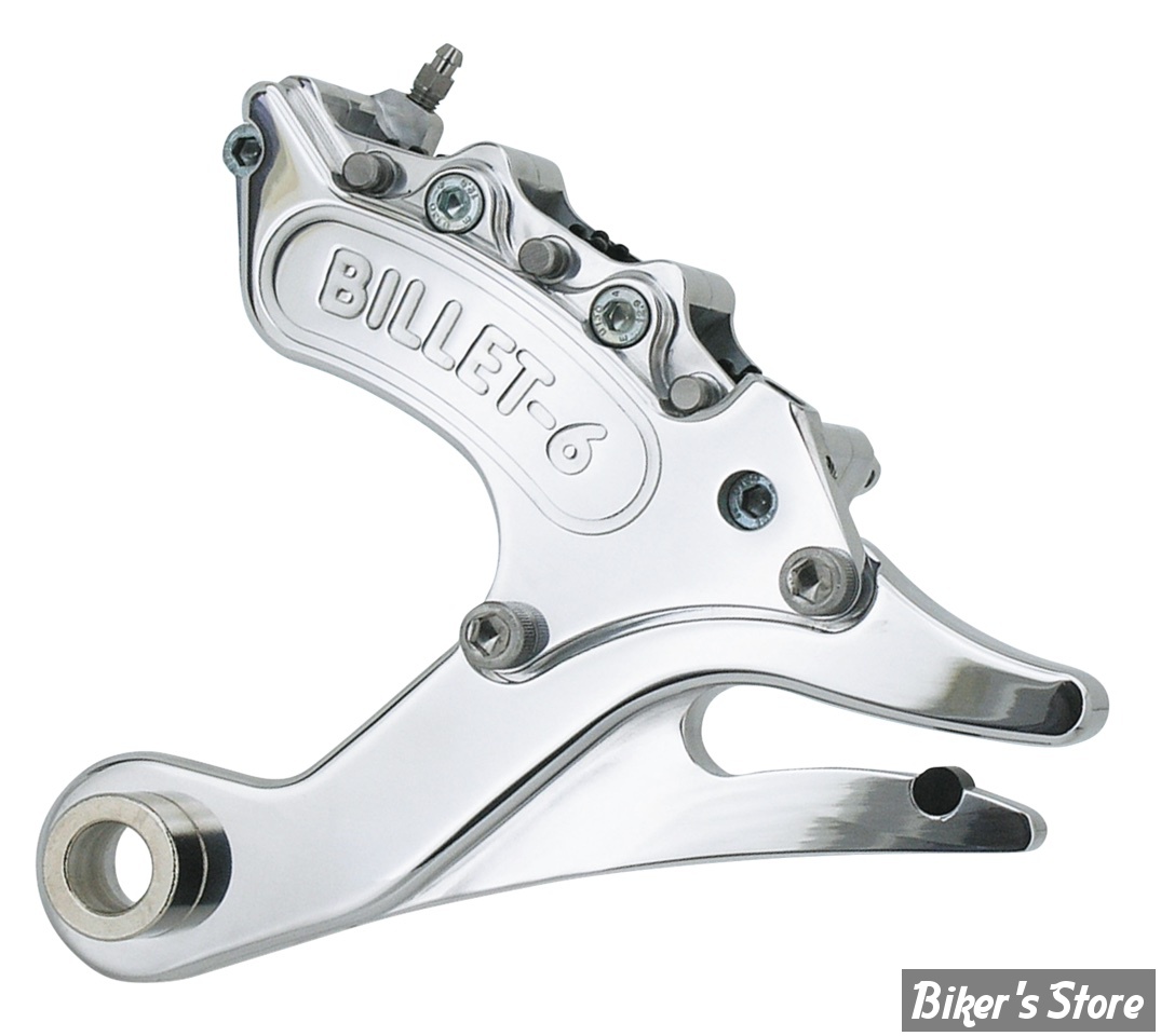 Harrison Engineering was, back in 1986, one of the first companies to design and develop a multi-piston aftermarket caliper for Harley-Davidson motorcycles. Each fully progressive 4 or 6 Piston caliper is precisely CNC machined from lightweight blocks of aircraft quality aluminum alloy. To keep the internal tolerances to a minimum, the caliper pistons are machined from special low expansion aluminum alloy and have a hard anodized finish that has the same anti-wear properties as hardened steel. For maximum performance the calipers have one pad for each piston. Harrison claims this gives a more ‘leading edge bite' on the disc than any two pad, or differential bore calipers. It is also especially beneficial in wet conditions, because the first set of pads sweep water off the disc, while the following 2 or 4 pads are still ‘biting' on the disc. That removes the effect of the calipers ‘skating' on the disc, and then braking sharply and suddenly when the disc becomes dry. They are truly progressive calipers, with a direct and sensitive relation between the amount of lever pressure, and the amount of braking power. These show polished or black anodized calipers not only have ultimate stopping power, they also have the ultimate looks, and are available for almost all models. The front calipers bolt straight to the front fork bottom leg, and the rear sets include the mounting bracket. Stainless steel shims, to space the caliper to the disc, and mounting bolts are included with each kit. The front as well as the rear sets are available in both 4 or 6 piston versions, as well as polished or black anodized. Matching design brake rotors can be found elsewhere in this catalogue. All Harrison Billet calipers are TÜV approved, and come with a limited lifetime warranty on piston wear.