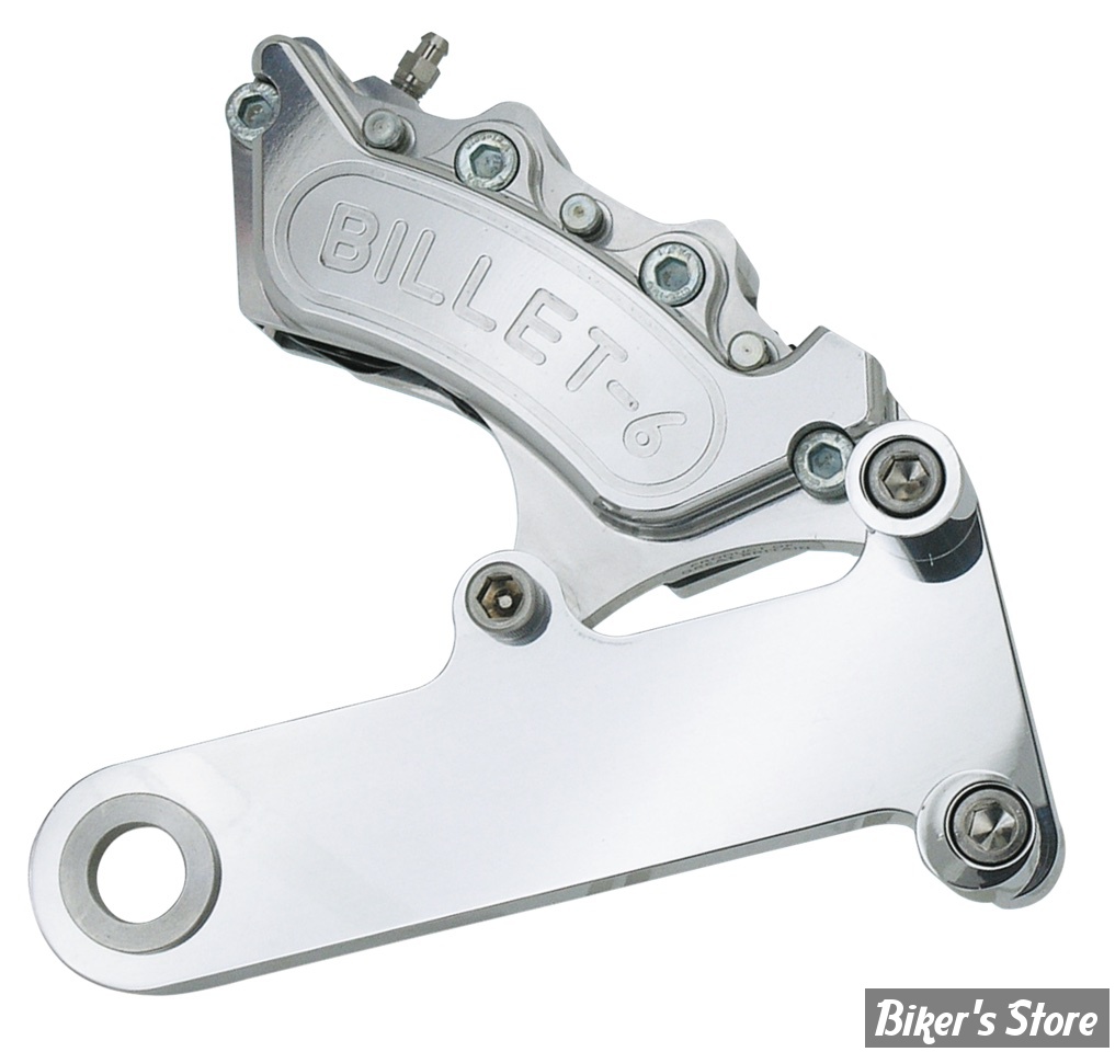 Harrison Engineering was, back in 1986, one of the first companies to design and develop a multi-piston aftermarket caliper for Harley-Davidson motorcycles. Each fully progressive 4 or 6 Piston caliper is precisely CNC machined from lightweight blocks of aircraft quality aluminum alloy. To keep the internal tolerances to a minimum, the caliper pistons are machined from special low expansion aluminum alloy and have a hard anodized finish that has the same anti-wear properties as hardened steel. For maximum performance the calipers have one pad for each piston. Harrison claims this gives a more ‘leading edge bite' on the disc than any two pad, or differential bore calipers. It is also especially beneficial in wet conditions, because the first set of pads sweep water off the disc, while the following 2 or 4 pads are still ‘biting' on the disc. That removes the effect of the calipers ‘skating' on the disc, and then braking sharply and suddenly when the disc becomes dry. They are truly progressive calipers, with a direct and sensitive relation between the amount of lever pressure, and the amount of braking power. These show polished or black anodized calipers not only have ultimate stopping power, they also have the ultimate looks, and are available for almost all models. The front calipers bolt straight to the front fork bottom leg, and the rear sets include the mounting bracket. Stainless steel shims, to space the caliper to the disc, and mounting bolts are included with each kit. The front as well as the rear sets are available in both 4 or 6 piston versions, as well as polished or black anodized. Matching design brake rotors can be found elsewhere in this catalogue. All Harrison Billet calipers are TÜV approved, and come with a limited lifetime warranty on piston wear.