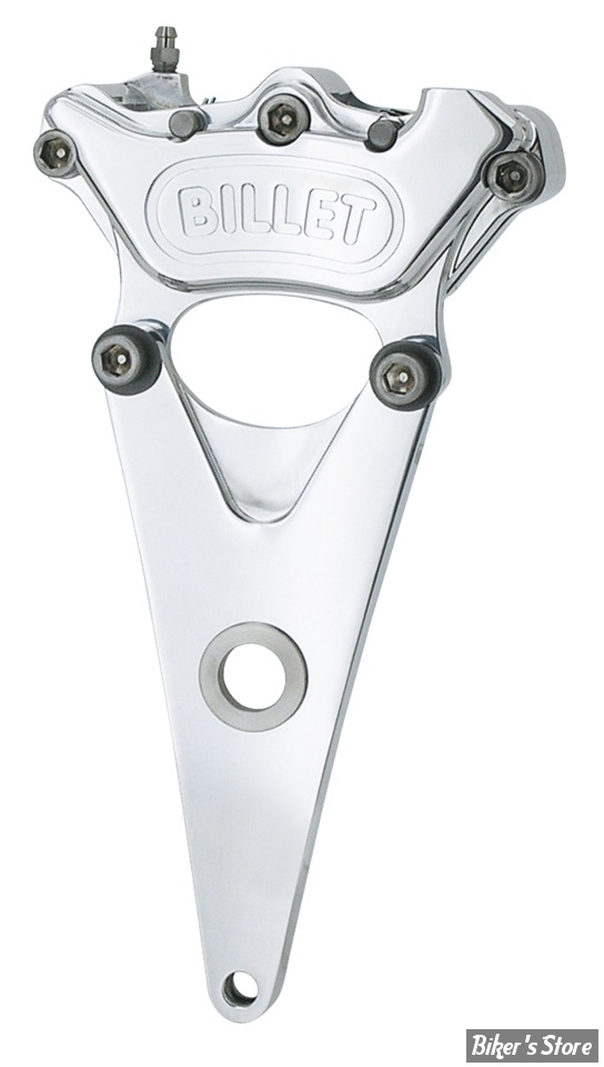 Harrison Engineering was, back in 1986, one of the first companies to design and develop a multi-piston aftermarket caliper for Harley-Davidson motorcycles. Each fully progressive 4 or 6 Piston caliper is precisely CNC machined from lightweight blocks of aircraft quality aluminum alloy. To keep the internal tolerances to a minimum, the caliper pistons are machined from special low expansion aluminum alloy and have a hard anodized finish that has the same anti-wear properties as hardened steel. For maximum performance the calipers have one pad for each piston. Harrison claims this gives a more ‘leading edge bite' on the disc than any two pad, or differential bore calipers. It is also especially beneficial in wet conditions, because the first set of pads sweep water off the disc, while the following 2 or 4 pads are still ‘biting' on the disc. That removes the effect of the calipers ‘skating' on the disc, and then braking sharply and suddenly when the disc becomes dry. They are truly progressive calipers, with a direct and sensitive relation between the amount of lever pressure, and the amount of braking power. These show polished or black anodized calipers not only have ultimate stopping power, they also have the ultimate looks, and are available for almost all models. The front calipers bolt straight to the front fork bottom leg, and the rear sets include the mounting bracket. Stainless steel shims, to space the caliper to the disc, and mounting bolts are included with each kit. The front as well as the rear sets are available in both 4 or 6 piston versions, as well as polished or black anodized. Matching design brake rotors can be found elsewhere in this catalogue. All Harrison Billet calipers are TÜV approved, and come with a limited lifetime warranty on piston wear.