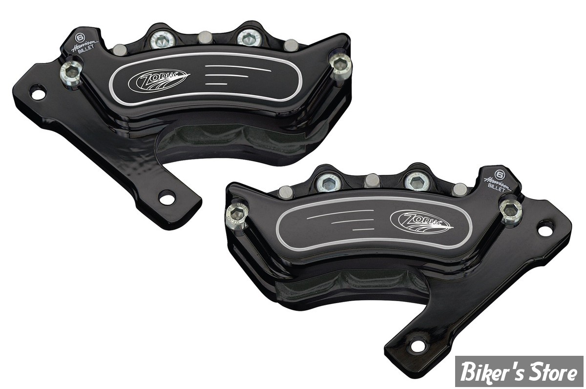 Ken Harrison de Harrison Engineering a été un des premiers dès 1986 à développer et dessiner des étriers de freins multi-pistons pour Harley-Davidson. Chaque étrier 4 ou 6 pistons est usiné CNC à partir d'aluminium qualité aviation. Pour conserver des tolérances internes minimales ces étriers légers sont fabriqués à partir d'un aluminium à faible dilatation thermique. Les pistons ont une finition anodisée dure qui a les mêmes propriétés que l'acier pour éviter les frictions. Il y a un jeu de plaquettes pour chaque paire de pistons ce qui est meilleur en temps de pluie car le premier jeu de plaquettes évacue la pluie pour les autres plaquettes. Ces étriers polis miroir n'ont pas seulement un look superbe ils ont également des performances ultimes de freinage et sont disponibles pour la plupart des modèles. Les étriers avant se fixent comme à l'origine tandis que les arrières ont une patte de fixation fournie. Des rondelles de calage ainsi que les vis sont fournies dans chaque kit. L'avant comme l'arrière existent en version 4 ou 6 pistons et sont polis miroir ou anodisés noir. Leur design qui se marrie parfaitement avec les disques Harrison's que vous trouverez ailleurs dans le catalogue. Tous les étriers Harrison sont approuvés par le TÜV et ont une garantie à vie limitée.
