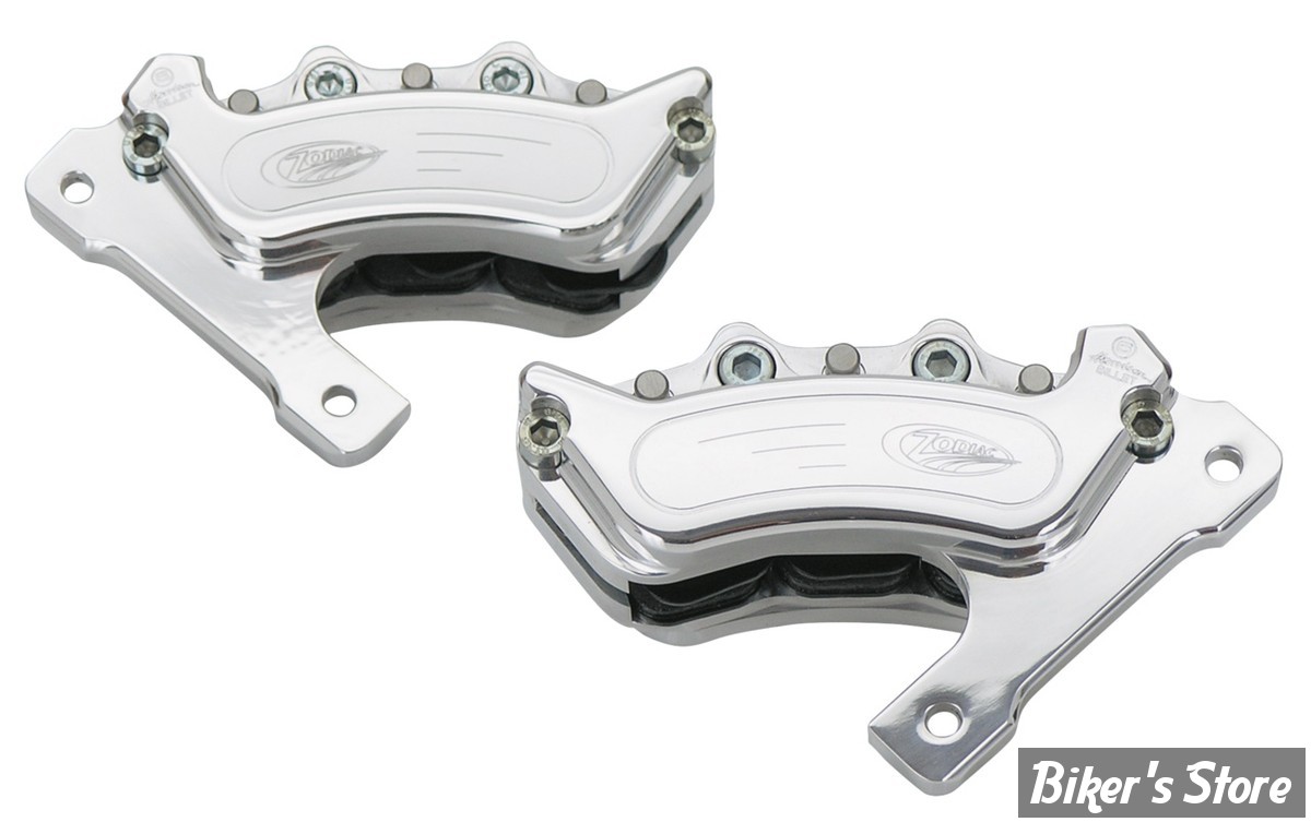 ETRIER HARRISON BILLET - AVANT - 6 PISTONS - MINI 6 - FOURCHE FAT / NAKED BUBBA - COTÉS GAUCHE ET DROIT - POLI