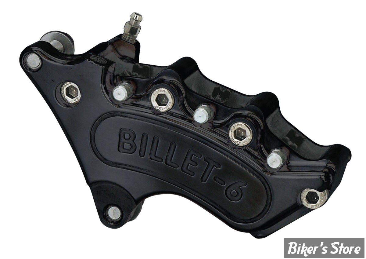 Harrison Engineering was, back in 1986, one of the first companies to design and develop a multi-piston aftermarket caliper for Harley-Davidson motorcycles. Each fully progressive 4 or 6 Piston caliper is precisely CNC machined from lightweight blocks of aircraft quality aluminum alloy. To keep the internal tolerances to a minimum, the caliper pistons are machined from special low expansion aluminum alloy and have a hard anodized finish that has the same anti-wear properties as hardened steel. For maximum performance the calipers have one pad for each piston. Harrison claims this gives a more ‘leading edge bite' on the disc than any two pad, or differential bore calipers. It is also especially beneficial in wet conditions, because the first set of pads sweep water off the disc, while the following 2 or 4 pads are still ‘biting' on the disc. That removes the effect of the calipers ‘skating' on the disc, and then braking sharply and suddenly when the disc becomes dry. They are truly progressive calipers, with a direct and sensitive relation between the amount of lever pressure, and the amount of braking power. These show polished or black anodized calipers not only have ultimate stopping power, they also have the ultimate looks, and are available for almost all models. The front calipers bolt straight to the front fork bottom leg, and the rear sets include the mounting bracket. Stainless steel shims, to space the caliper to the disc, and mounting bolts are included with each kit. The front as well as the rear sets are available in both 4 or 6 piston versions, as well as polished or black anodized. Matching design brake rotors can be found elsewhere in this catalogue. All Harrison Billet calipers are TÜV approved, and come with a limited lifetime warranty on piston wear.