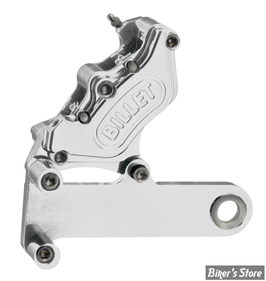 Harrison Engineering was, back in 1986, one of the first companies to design and develop a multi-piston aftermarket caliper for Harley-Davidson motorcycles. Each fully progressive 4 or 6 Piston caliper is precisely CNC machined from lightweight blocks of aircraft quality aluminum alloy. To keep the internal tolerances to a minimum, the caliper pistons are machined from special low expansion aluminum alloy and have a hard anodized finish that has the same anti-wear properties as hardened steel. For maximum performance the calipers have one pad for each piston. Harrison claims this gives a more ‘leading edge bite' on the disc than any two pad, or differential bore calipers. It is also especially beneficial in wet conditions, because the first set of pads sweep water off the disc, while the following 2 or 4 pads are still ‘biting' on the disc. That removes the effect of the calipers ‘skating' on the disc, and then braking sharply and suddenly when the disc becomes dry. They are truly progressive calipers, with a direct and sensitive relation between the amount of lever pressure, and the amount of braking power. These show polished or black anodized calipers not only have ultimate stopping power, they also have the ultimate looks, and are available for almost all models. The front calipers bolt straight to the front fork bottom leg, and the rear sets include the mounting bracket. Stainless steel shims, to space the caliper to the disc, and mounting bolts are included with each kit. The front as well as the rear sets are available in both 4 or 6 piston versions, as well as polished or black anodized. Matching design brake rotors can be found elsewhere in this catalogue. All Harrison Billet calipers are TÜV approved, and come with a limited lifetime warranty on piston wear.