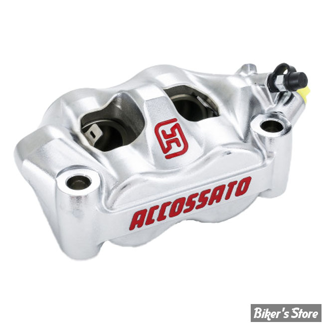 100mm mounting distance. Aluminum pistons. 4x ST (Standard sintered) brake pads per caliper. Complete with Standard brake pads. Accossato Monobloc Forged Radial Brake Calipers are engineered for riders that demand maximum performance and precision. Comes complete with 4x ST (Standard sintered) brake pad set. Manufactured from high-quality CNC machined forged aluminum, this caliper combines strength with a rigid lightweight construction to deliver exceptional braking control and reliability. Each caliper is designed to maximize braking efficiency and handling. Each caliper is also checked and tested before it it leaves the factory. This makes an Accossato caliper an excellent choice for riders that demand top-level technology paired with uncompromised quality.