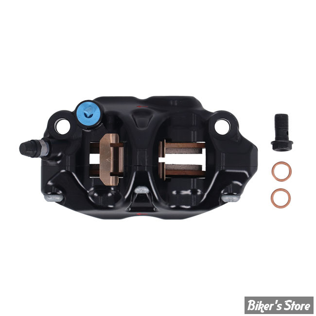 Détails techniques : - 108 mm centre à centre - 22,5 mm décalés - 4 pistons en aluminium de 32 mm Ø - Corps en aluminium usiné CNC en 2 pièces - Finition anodisée dure - Poids (sans plaquettes) 720 grammes - Matériel en acier inclus - Ressorts de plaquettes de frein inclus - Plaquettes de frein incluses - Pour les plaquettes de frein de remplacement 'Forme C' voir (996235)