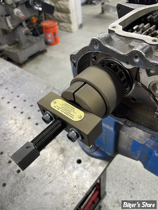 Used to pull the starter clutch gear (33381-39 / 2446-39) with ease from the mainshaft, on models with kickstart. Will not slip off gear and will prevent damage to clutch gear or mainshaft. - Designed to stay together when you put it back in your toolbox, no hunting for individual tool parts - Manufactured from heat treated 4140 steel to last - Compatible with stock and most aftermarket 4-speed kickstart - 100% made in USA
