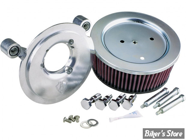 Le meilleur et le plus simple kit filtre à air pour Sportster, Big-Twin et Twin Cam...du moment !. Equipé d' un support de filtre tout-en-un qui fait aussi support de carburateur et reniflards intégrés pour faire baisser la pression dans les carters. Les reniflards ont une visserie banjo avec O-Ring et conduites vers l’entrée du carbu : plus de durites, branchements, fuites d’huile ou de mayonnaise! Les kits comprennent la plaque aluminium usinée, le couvercle, un filtre Ness haut débit, banjos chromés, des instructions simples et la visserie sont compris. C'est simple, beau, efficace, et d'un rapport qualité/prix très interressant.