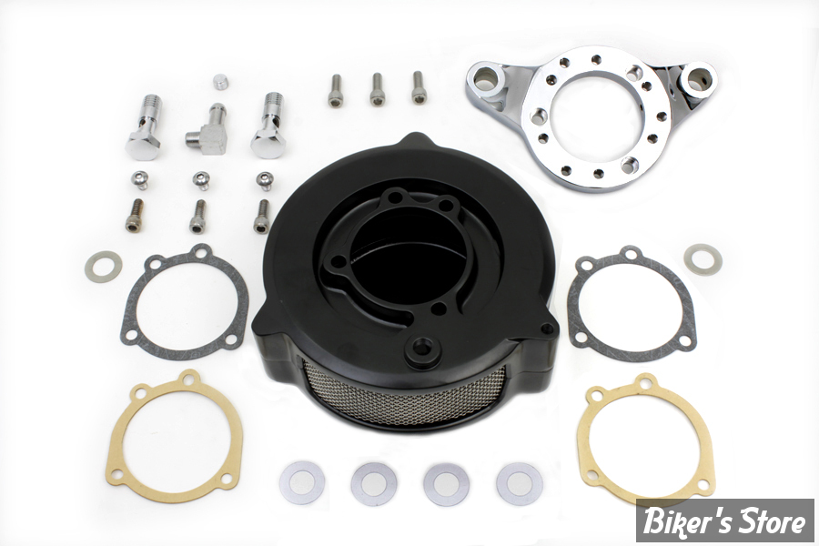 pour Sportsters de 1991 à 2003 avec carburateur Keihin CV. Version de kit filtre avec reniflards internes. Kit complet, prêt à monter. Le Kit