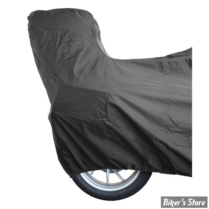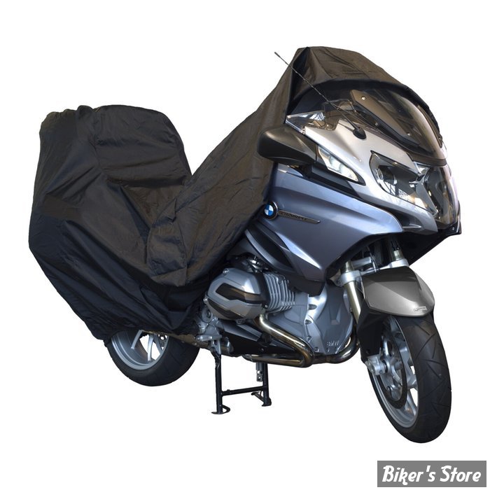 Taille L, pour les modèles de moto avec topcase (longueur 229cm x largeur 99cm x hauteur avant 135cm x hauteur arrière 125cm)