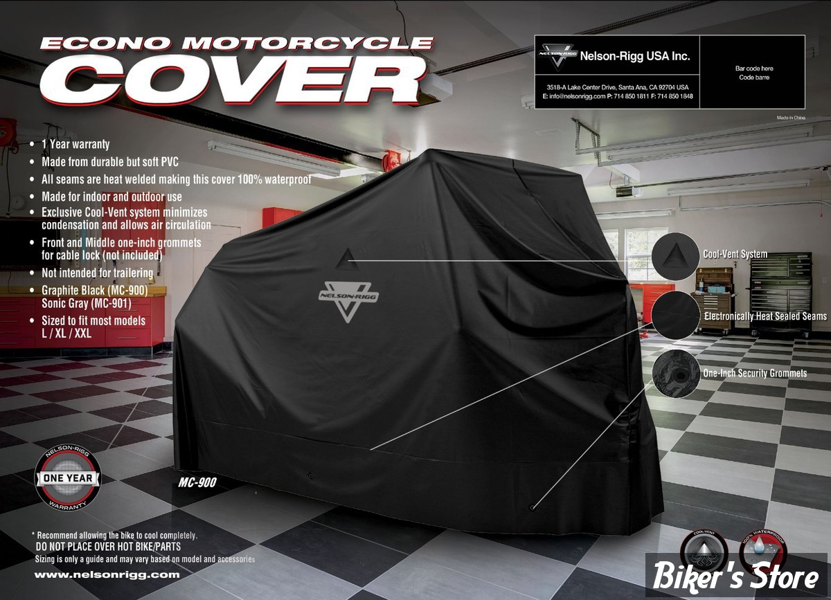 HOUSSE MOTO D'EXTERIEUR - HOUSSE MOTO NELSON RIGGS - ECONO MOTORCYCLE COVER - MC-900 - NOIR - LONGUEUR : 113" - TAILLE : XL - MC-900-04-XL