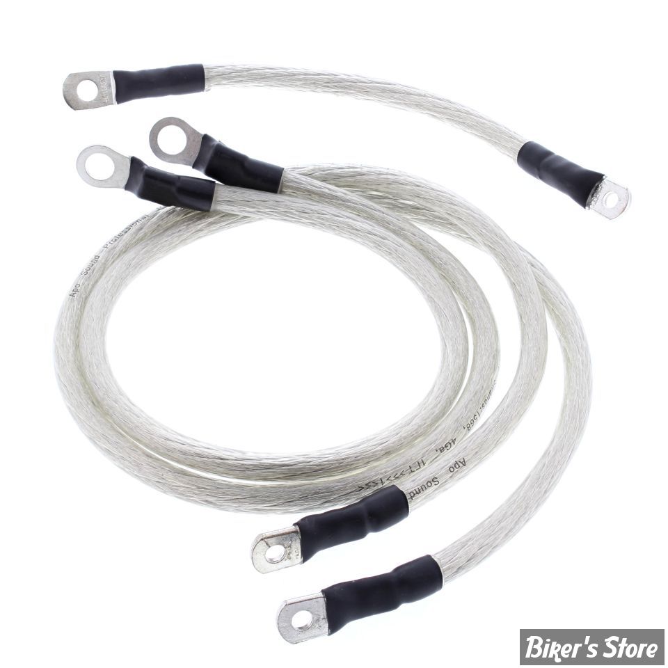 Contains 3 battery cables: 1x 9" long & 2x 30" long. Model specific 4 gauge (5.19mm diameter / 19mm²) battery cables equipped with 1/4" and 5/16" terminals. Manufactured with 36 gauge (0.005"/ 0.13mm diameter) copper wire strands. The 7 over 7 bundling of these copper strands guarantee both excellent current flow and flexibility of the cable. The outer jacket is rated up to 125°C and oil & gas resistant.