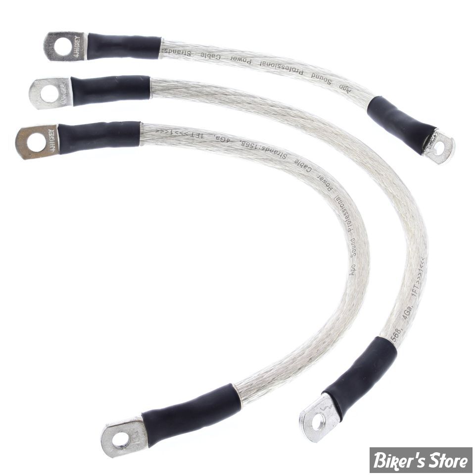 Kit de cables prévus pour un remplacement d'origine (batterie en lieu et place, sens de polarité d'origine). Equipés aux extrémités d'une cosse sertie de 1/4" et une autre de 5/16". Les meilleurs câbles du marché, prévus spécialement à cet effet. Issus de la technologie informatique, ils offrent d'excellentes qualités conductrices avec un minimum de pertes de tension.