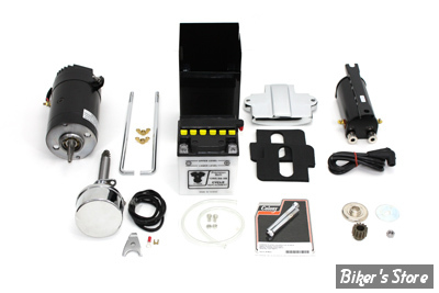Le kit comprend un générateur noir de 12 volts avec un régulateur à semi-conducteurs intégré, une mini batterie de 12 volts, un kit de boîte de batterie qui s'insère dans le compartiment de batterie d'origine de 6 volts, une bobine de 12 volts, un distributeur d'avance automatique et des vis de générateur.