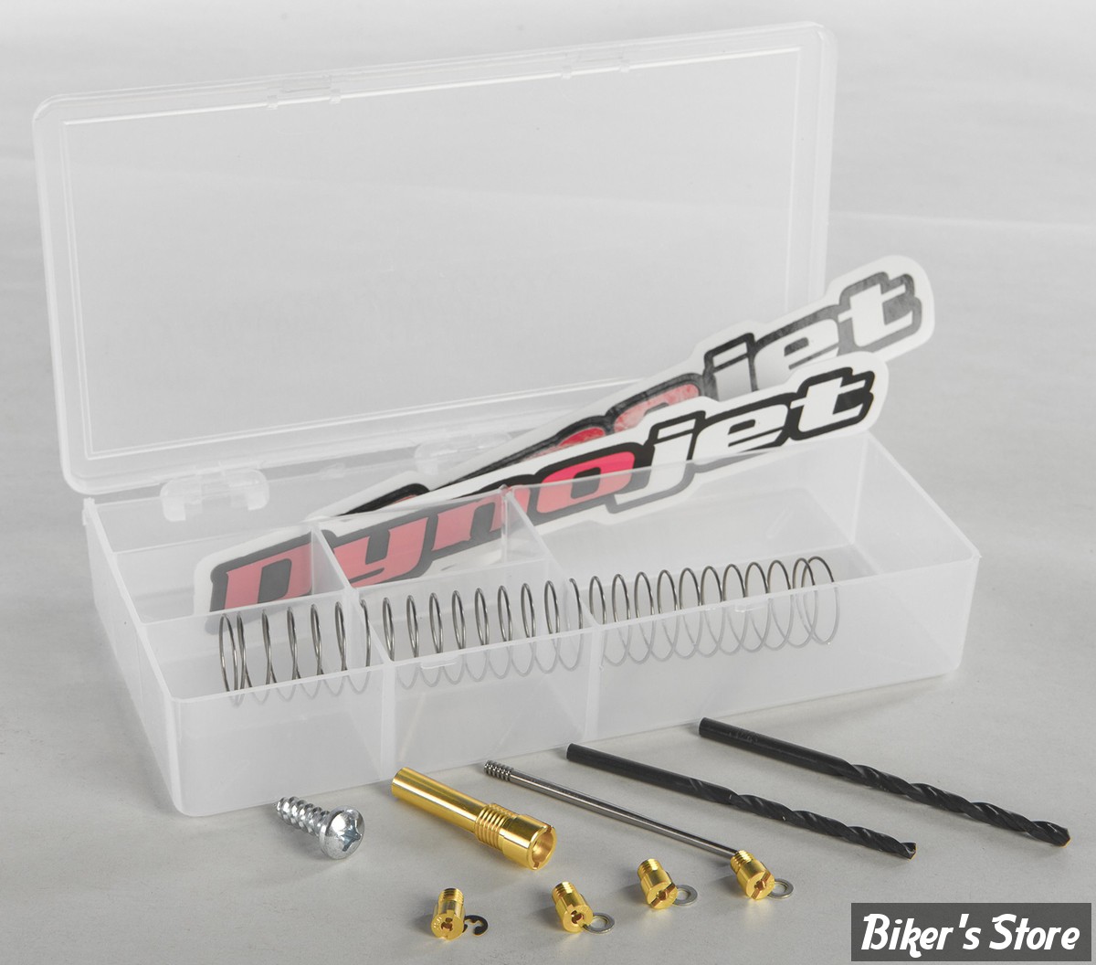 Ces nouveaux kits de réglage de carburateurs de Dyno-Jet constituent la meilleure solution pour l’élimination des trous à l’accélération des modèles Sportster et Big Twin de 1988 au présent équipés de carburateurs CV Keihin (origine). Les kits DynoJet permettent le réglage facile du carburateur sur les moteurs de série, sur les moteurs avec cames et échappements à haute performance et les motos equipées de filtre à ait aftermarket au débit d'air plus important. Chaque kit comprend un manuel de directions étape par étape. Il comprend aussi une gamme de gicleurs principaux, un diffuseur, une aiguille réglable avec intercalaires, un ressort et des forets.