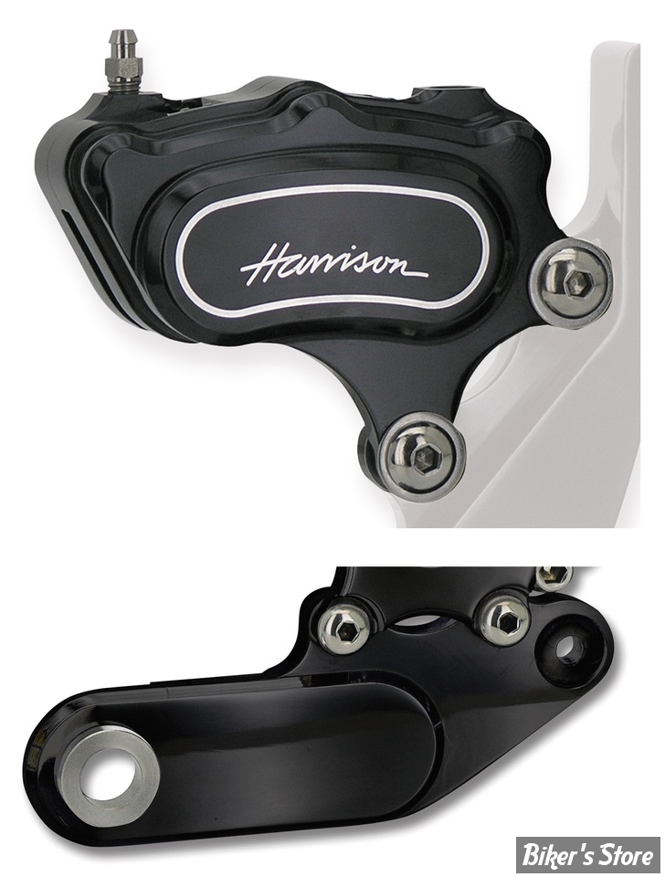Pour ceux qui recherchent une ligne plus élancée pour leur étrier nous avons aussi leurs étriers 4 et 6 pistons dans la gamme Harrison ''Slimline''. Comme les étriers originaux Harrison ''Billet'' chaque étrier est précisément usinées CNC à partir d'aluminium de qualité et avec des pistons spéciaux anodisé dur à faible dilatation et un jeu de plaquettes de frein pour chaque piston. Harrison affirme que cela donne plus de mordant sur le disque que deux plquettes ou des étriers assymétriques. Il est également particulièrement bénéfique dans des conditions humides, car le premier jeu de plaquettes balaye l'eau hors du disque tandis que les 2 ou 4 plquettes suivantes vont mordre sur le disque. Cela supprime l'effet de patinage des étriers sur le disque. Les étriers Étriers Harrison Slimline sont véritablement progressif, avec une relation directe et sensible entre la quantité de pression de levier et la quantité de puissance de freinage. Ceux-ci existent en poli, chromé ou noir anodisé en 4-et 6 pistons. Les étriers avant se montent les fourreuax de fourche avant et pour l'arrière le support de montage est fourni. Des cales en acier inoxydable pour espacer l'étrier sur le disque ainsi que les boulons de montage sont inclus avec chaque kit. Les disques assortis se trouvent ailleurs dans ce catalogue.