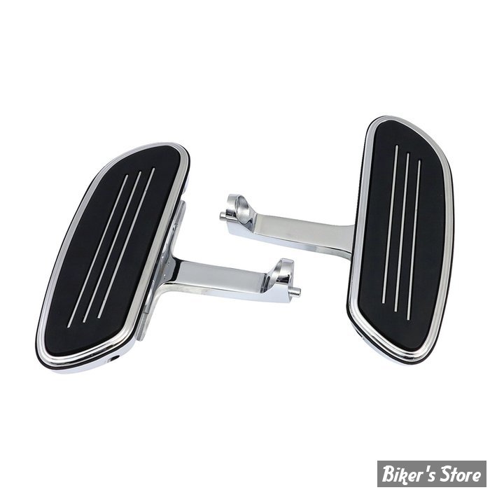 Chrome plated. Black rubber inlay. Style-matches the Swept Wing design rider floorboards that is used on some Road King® Custom, Road Glide® Custom and Street Glide® models. Will fit physically fit all Touring models.