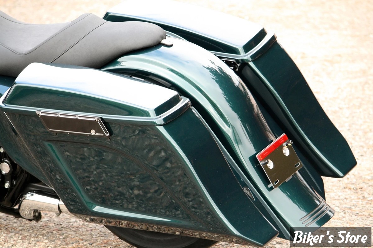Ces sacoches rallongées ont un look différent. Un remplacement parfait pour vos sacoches rigides d'origine avec un superbe look rallongé. Fabriquées en fibre de verre avec une finition gel coat blanc, prêt pour la préparation de votre peintre. Se montent avec les couvercles, loquets et autres accessoires d'origine, aussi en excellent accord avec le garde-boue arrière "Flow". Pour tous les modèles Touring 2009-2013.