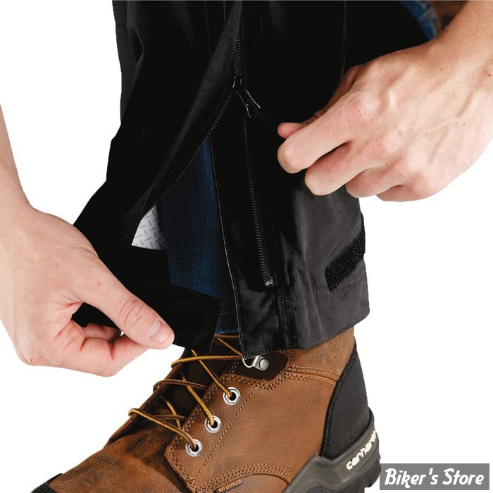 Ce pantalon imperméable Carhartt Monterey est conçu pour vous permettre de rester actif même sous une pluie battante et par grand vent. Léger et compressible, il est facile à enfiler et à ranger. Ses coutures étanches et son imperméabilité empêchent l'eau de pénétrer sans retenir la transpiration. La technologie Wind Fighter™ vous protège des rafales. Sa coupe décontractée offre une grande liberté de mouvement. • Coupe décontractée • Technologie Wind Fighter™ : résistant au vent • Technologie Storm Defender™ : membrane laminée imperméable et respirante • Deux poches avant zippées • Poche arrière zippée sécurisée sur le côté droit • Deux poches avant avec genouillères et ouvertures de nettoyage • Fermetures éclair de la cheville au genou avec rabats anti-tempête • Bas de jambes ajustables par bande auto-agrippante • Coutures entièrement étanches • Se range dans sa propre poche • Étiquette Carhartt cousue sur la poche • Tissu tissé • 143 g/m² • 100 % nylon