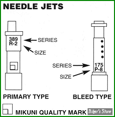 (Voir le tableau pour les caractéristiques). Needle Jet (Emulsion tube), VM30 Carb, VM32 Carb, VM34 Carb, VM36 Carb. La Pièce