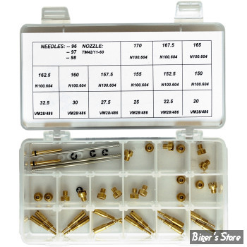 Boite de gicleurs et aiguille pour atelier - Pour carburateurs Mikuni HSR42. Le Kit