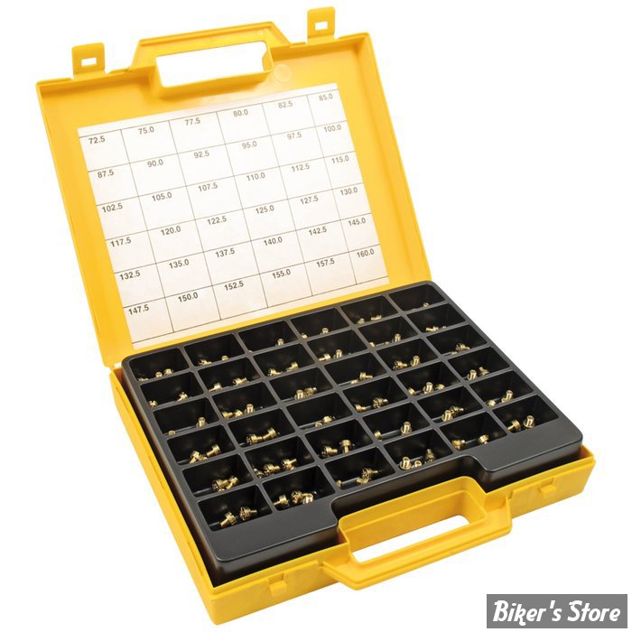 Boite de gicleurs principaux pour atelier - Pour carburateurs Mikuni Smoothbore HSR42/45/48, VM16, HS40, RS, TM, VM29/33. Le Kit