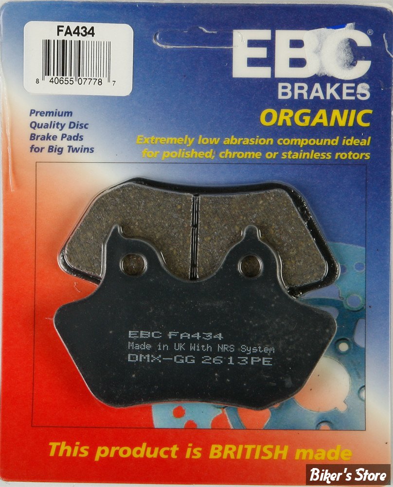 - EBC 1 : FA ORGANIQUE : La gamme de plaquettes de frein organiques de deuxième monte de grande qualité d'EBC, fabriquées au Royaume-Uni en fibres aramide Dupont Kevlar, offre un freinage plus efficace, durable, silencieux et puissant. Idéales pour toutes les motos, ces plaquettes ont été testées par le magazine allemand Motorrad et ont surclassé toutes les autres plaquettes organiques en termes de LONGEVITE. Ces plaquettes ont été soumises aux tests TUV et ont reçu l'homologation KBA. Elles ont également été testées et homologuées dans le cadre de la nouvelle réglementation R90 relative à la sécurité des freins.