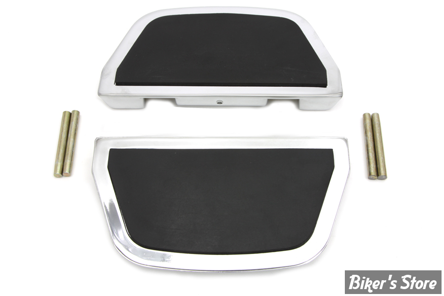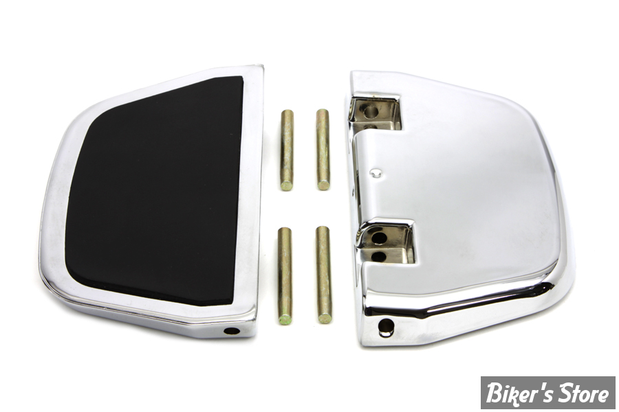 -Chrome passenger footboard set includes rubber pads. Footboards can flip up when not in use.