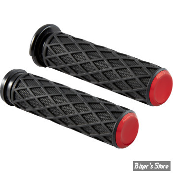 POIGNEES - ARLEN NESS - TIRAGE PAR CABLES - DIAMOND GRIPS - CAOUTCHOUC : NOIR / EMBOUTS : ROUGE - 500-015