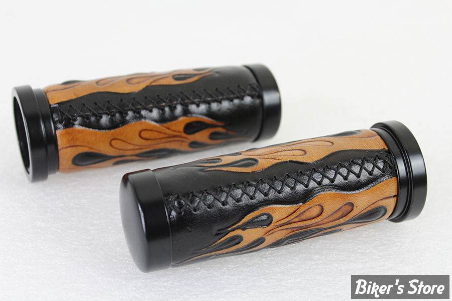 POIGNEES - V-TWIN TEDD CYCLE - Flame Style Throttle By Wire Grip Set with Black Ends - AMBER / NOIR