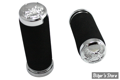 POIGNEES - V-TWIN TEDD CYCLE / WYATT GATLING - Eagle Passion Throttle By Wire Grip Set - NOIR / CHROME