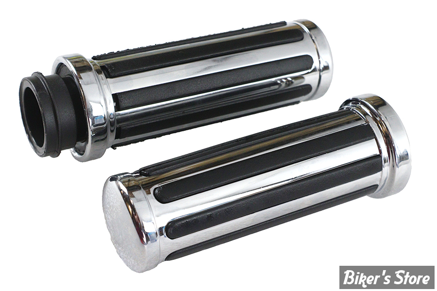 POIGNEES - V-TWIN TEDD CYCLE / WYATT GATLING - Rail Style Throttle By Wire Grip Set - CHROME