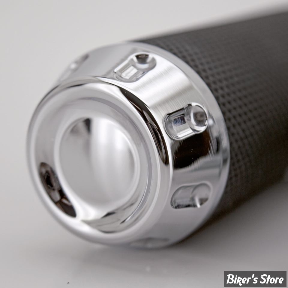 Ces poignées en aluminium usiné sont recouvertes de caoutchouc pour ajouter la touche finale à votre moto. Disponible pour câbles et tirages électriques en chromé, chromé grenaillé, noir avec des coupes claires, ou l'exclusif Zodiac noir 2 tons, une finition qui correspond parfaitement avec la finition noire du moteur de Harley.
