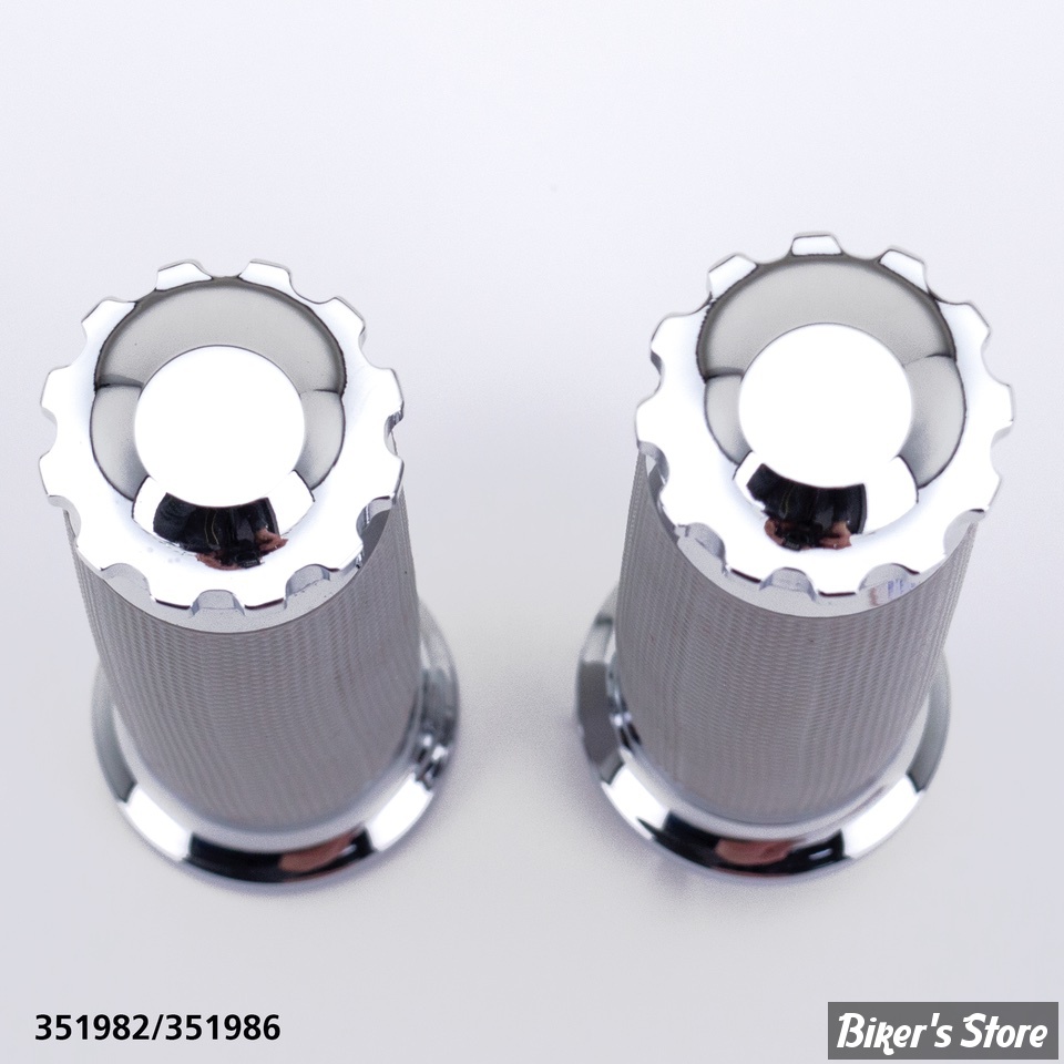 Les poignées Tornado II sont une version de design des poignées Tornado. Comme les Tornado celles-ci sont usinées en aluminium avec une finition chromée. Elles ont des caoutchoucs en étoiles, croix ou damier fournissent un confort supplémentaire et une prise antidérapante. Les embouts ont le même design au bout ou sont lisses. Disponible pour modèles 1973 au présent avec des câbles d'accélérateur simple ou double sauf modèles avec valve au guidon. Aussi disponible pour Touring 2008 au présent avec tirage électrique. Il existe aussi en Tornado II les repose-pieds, des embouts de frein et de sélecteur...