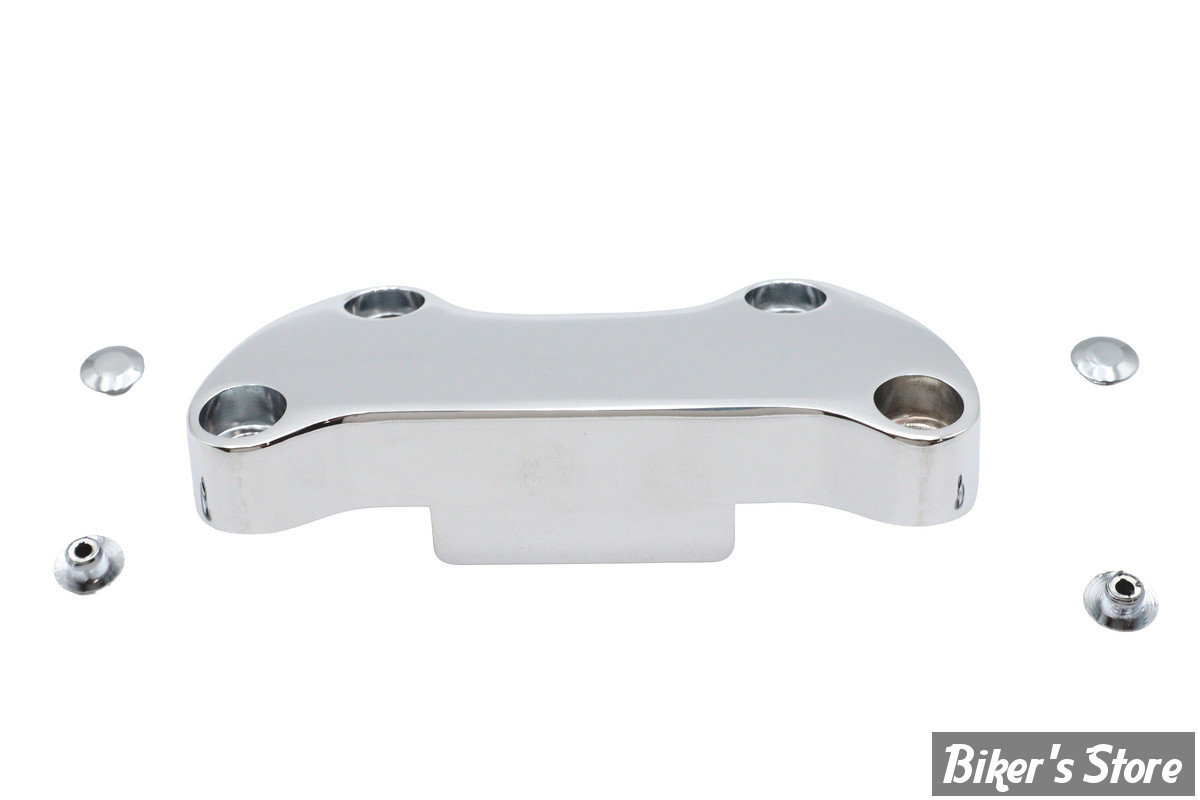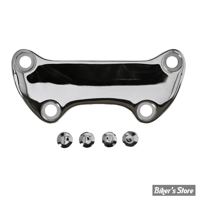 Chrome, plain. Fits oem style straight and pullback risers as used on various 73-up Big Twin, XL Sportster (excl. FLT Touring models) with 1" diameter handlebars, 3-1/2" distance between riser mount bolts and offset top clamp bolts.